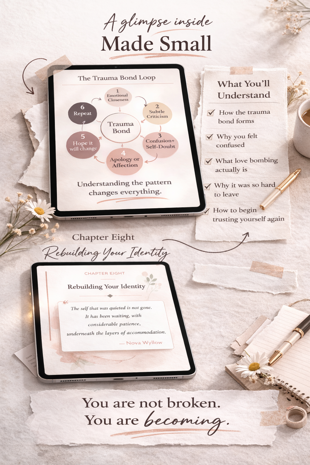 The Made Small Companion Workbook is designed to help you move from understanding → rebuilding, with guided prompts and structured reflection.